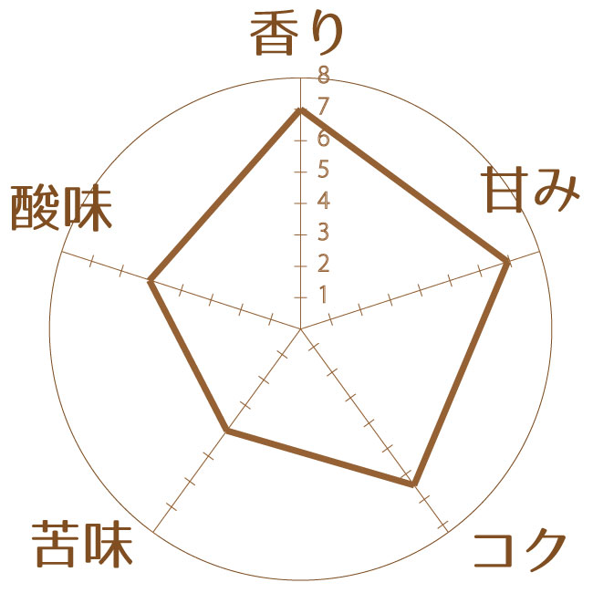 甘味とコクがしっかりと感じられる一杯です。優しくしっとりとした華やかさが特徴的。